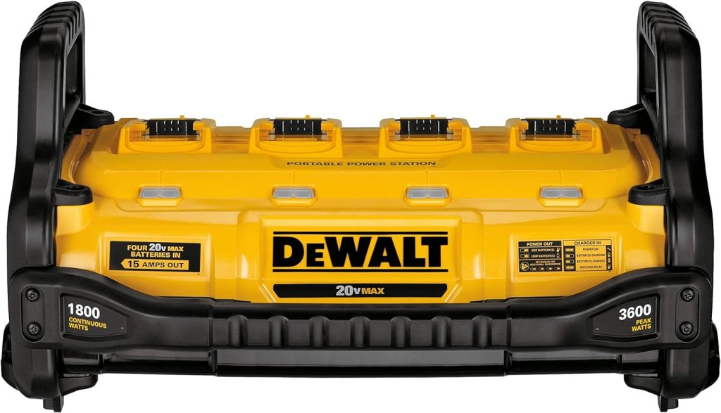 Portable Power Station: Now, this is a splurge item but has come in handy so many times. Especially at the job sites. We even took this on our camping trip. It allows you to power tools or devices while also charging up to four DeWalt batteries.