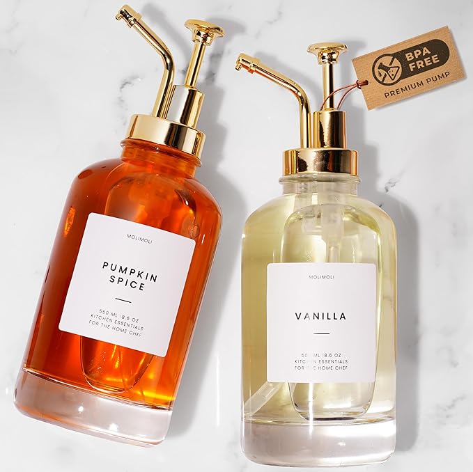 Coffee Syrup Dispensers: Look at these!! These are adorable – I love the look and vibe of these dispensers. Create a more aesthetic coffee bar setup with these and bonus, the labels are included!