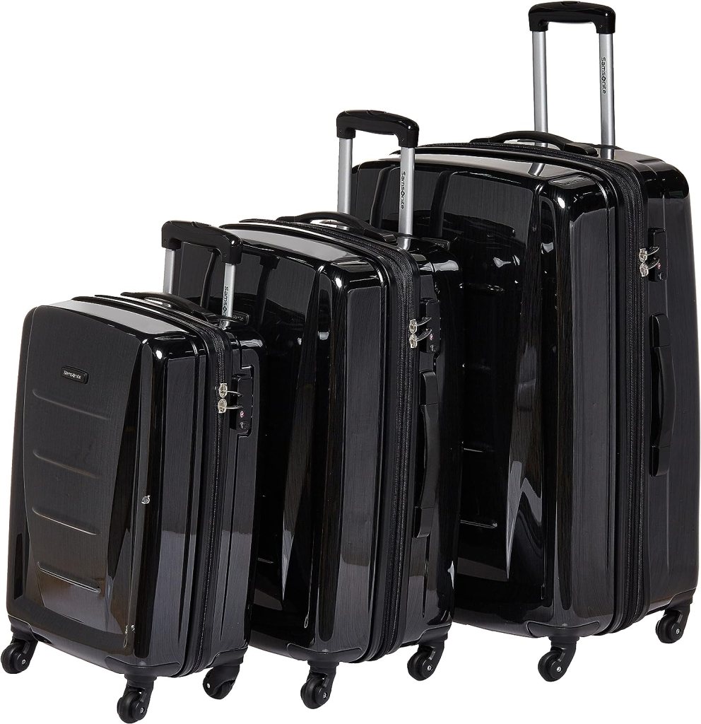 Samonsite 3-pc Suitcase Set: We own a few Samonsite suitcases and have no complaints. Their durable, lightweight and don’t break the bank like some other name brands. The wheels are well designed and spin in all directions making them easy to navigate through a crowded airport.